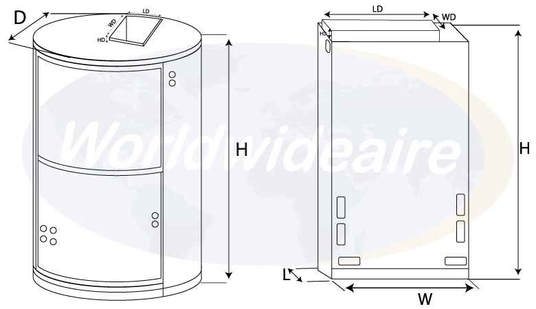 - Insulated double walls in cylindrical and rectangular cabinets reduce energy Losses; sound power level and air leakage rate to ASHRAE standards.